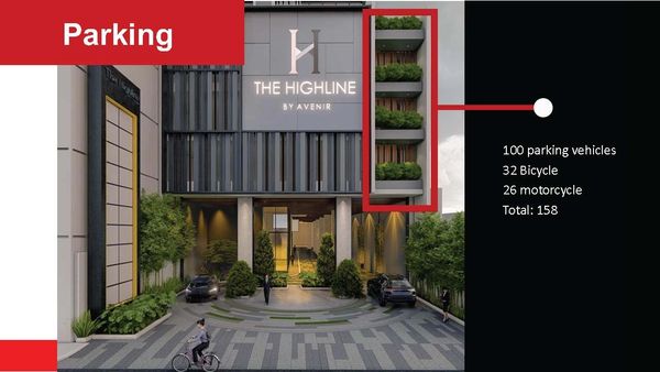 The frontage of the Highline by Avenir is 15 meters. Total Gross Floor Area is 12,036 sqm.