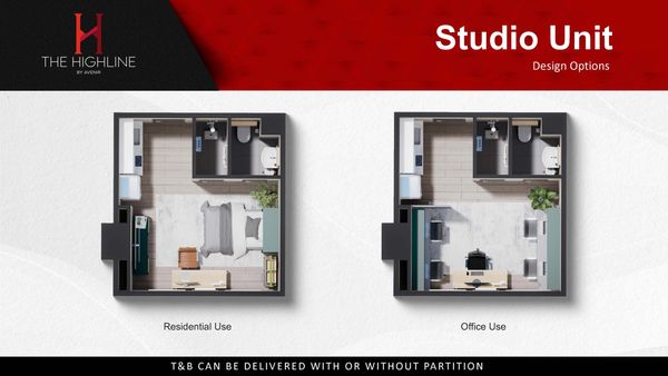 The HIGHLINE offers a variety of well-designed units that cater to different lifestyles and needs. Wether you are looking for a cozy studio for residential use, for co-living, or for office use. There's something for everyone here.
